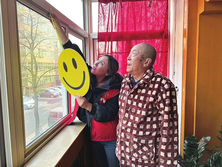 有一次,网格员高小梅发现,郭大爷家挂了红色的“囧脸”,赶忙上楼。原来,老人遇到了烦心事,想让社区帮忙协调。楼上来了新租客,最近收拾家,响动太大,影响休息。网格员上楼协调后变得安静多了。下楼再看,表情换成了“笑脸”。