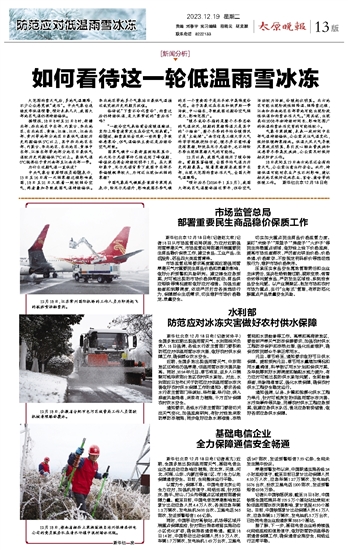 “预计后冬(2024年1至2月),我国大部地区气温整体接近常年,但冷空气活动较为活跃,冷暖起伏明显。北方地区可能出现阶段性强降温、强降雪过程,江南和西南地区东部等地可能出现阶段性低温和雨雪冰冻天气。”周兵说,出现类似2008年初持续时间长、影响范围广的低温雨雪冰冻灾害的可能性较小。