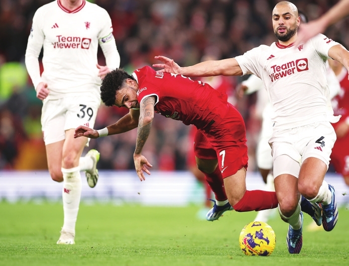 比赛第95分钟,曼联后卫达洛特和利物浦前锋萨拉赫边线拼抢,皮球在先后碰到两人脚尖后出界,慢镜头回看萨拉赫似乎是最终触球者,但主裁奥利弗却判罚利物浦前场边线球,这让葡萄牙边卫十分愤怒,他先后两次挥手对判罚宣泄不满。