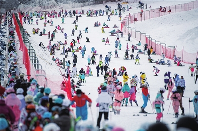 12月17日,滑雪爱好者在湖北神农架国际滑雪场滑雪。得天独厚的自然地理条件为当地冰雪产业的发展提供优质资源。