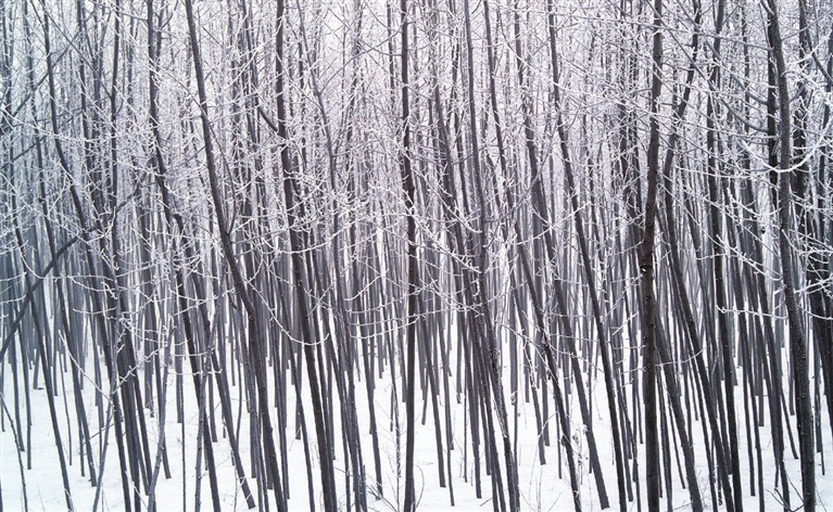 《冬日素描》是一次外出途中,突遇较大的风雪,昏天黑地,令人恐惧。待风雪稍停后,发现眼前的景致出乎意外的特殊。宁静的小树林,变成了一幅水墨画,好似素描一般,清新淡雅,不失为一幅很好的装饰作品。雪后的白色背景上,衬托出了小树林浓淡相宜的肢体语言,覆盖枝条的白雪,舒展自如,犹如刻意画上去似的,优雅动人。从构图上来讲,你可以竖构图,也可以横构图,取舍尽在其中。略暗的散射光带给画面以柔和不至于反差强烈的效果。虽不是什么大作,但也可以反映出摄影者观察事物和捕捉瞬间的能力。