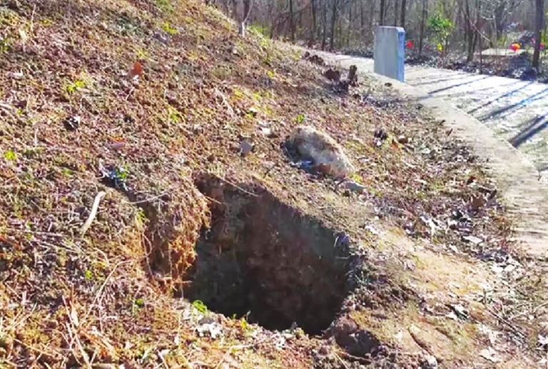 姚先生是淮安当地的文物爱好者,12月22日,他到韩母墓参观,在墓葬一处发现了一个5米深的盗洞,盗洞附近散落着白膏泥。