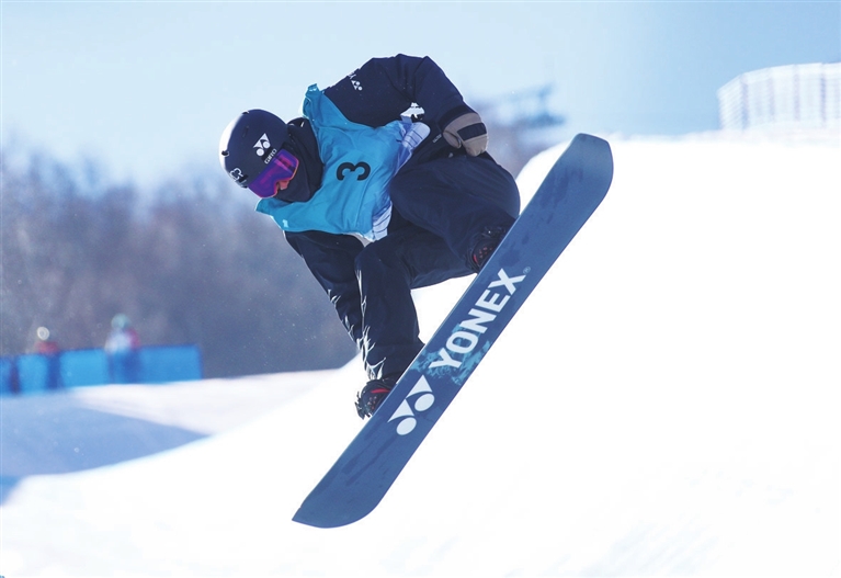 12月25日,北京市体育局选手张义威在比赛中。当日,在河北省张家口市崇礼区云顶滑雪公园举行的2023-2024赛季全国单板滑雪U型场地锦标赛暨第十四届全国冬季运动会资格赛公开组男子个人决赛中,张义威以95.60分获得冠军,北京市体育局选手王梓阳获得亚军,辽宁省冬季运动管理中心选手谷奥获得季军。 新华社 发