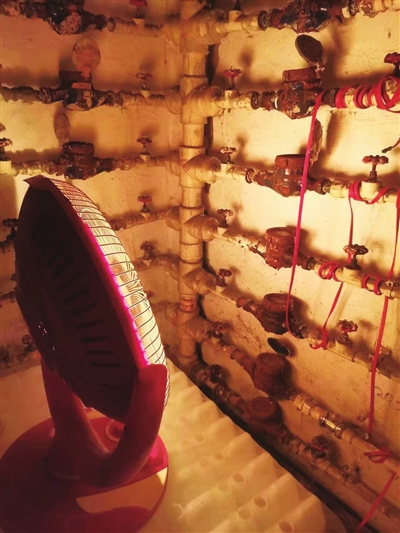 为了再快一点,网格员搬来一台“小太阳”,对着水管加热,终于解冻。为避免再次被冻,维修人员特意给地下室装了门帘,挡住了冷风。