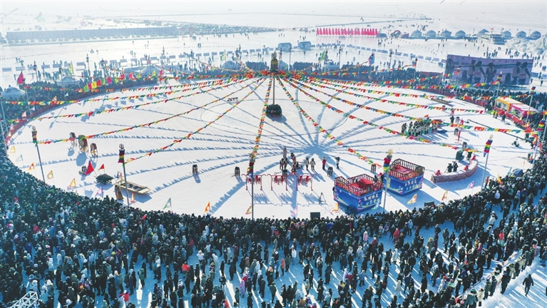 当日,查干湖第22届冰雪渔猎文化旅游节在吉林松原查干湖冰面上启幕。活动现场,来自全国各地的游客相聚观赏冬捕盛况,感受冰湖腾鱼的丰收喜悦。
