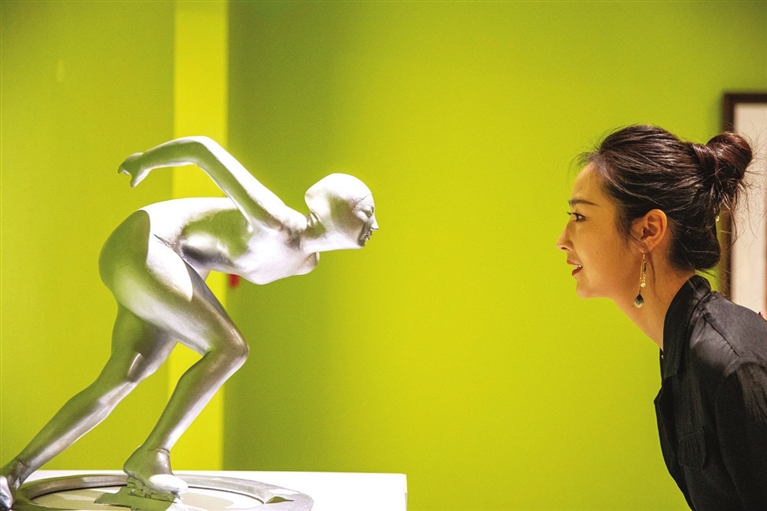 12月27日,一名参观者在泰国曼谷的泰国国家美术馆观看雕塑作品。为深化中泰两国国家美术馆合作、推进丝绸之路国际美术馆联盟建设,“中国写意——来自中国美术馆的艺术”展览27日在泰国首都曼谷开始举行。本次展览以“中国写意”为主题,汇集了42位国内著名艺术家的63件优秀创作。 新华社 发