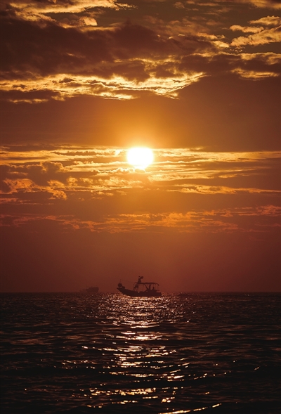 这是1月1日在广西北海涠洲岛五彩滩拍摄的日出。