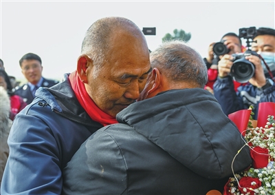 李世英握着哥哥虞仁杰的手激动不已:“感谢国家,当年救活了我们。感谢国家,这么多年了,还没有忘记我们,帮我找到了亲人。”