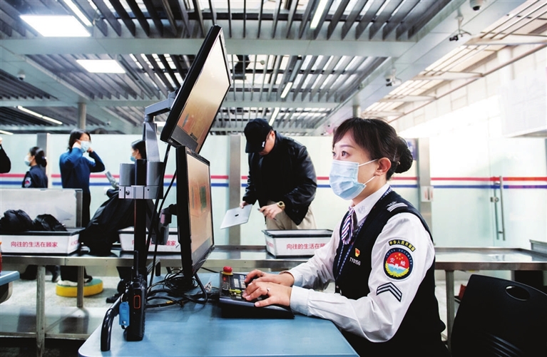 记者在一旁观察,进入工作状态后,只要不是在做人身检查,李舒舒的腰板始终挺得笔直。“工作的时候要注意形象,整个人要有精神。不过一回家,这腰就酸到不行了。”她说,滑膜炎、腰肌劳损、膝盖积液,是安检员的职业病。