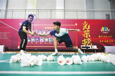 1月3日,太原市羽毛球队队员正在教练的指导下打磨技术。该队在2023年取得优异成绩的基础上开展冬训,为2024年各项赛事进行体能和技能的储备。 牛利敏 摄