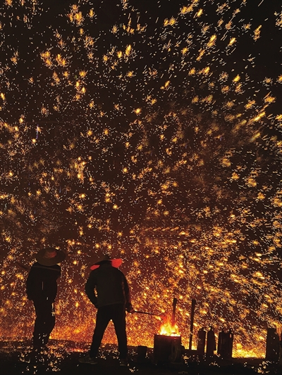 而打铁花的父亲老了,老成一个换双膝关节之后扶着助行器踽踽而行的老人。三十多年过去,村庄的铁花之夜已成遥远的想象,但当我在微信视频里说到打铁花的事,他的老年人浑茫的眼睛里,一瞬间,再次透出炉火与铁的光芒。