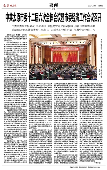 中共太原市委十二届六次全体会议暨市委经济工作会议召开