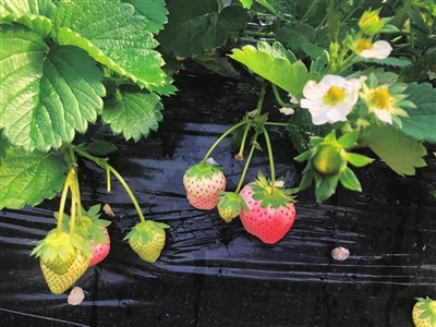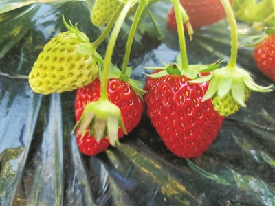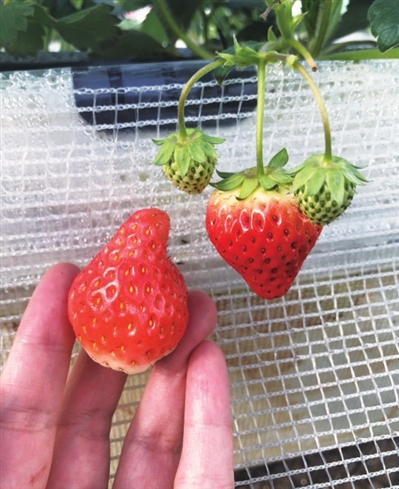 “其实,‘黑珍珠’是一款深红色草莓,与‘白雪公主’一起种植,观赏性更强,也更有趣味性。”技术人员是来自浙江的一对夫妻,培植出了独一份的浪漫。