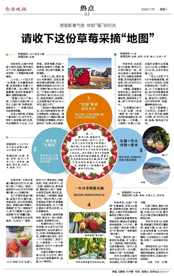 进入腊月以来,新春的气息与日渐浓。前不久,位于我市小店区刘家堡乡的草莓小镇开园,不仅丰富了本地菜篮子,也为市民的冬日户外休闲活动提供了好去处。我们选取了其中4家规模较大的草莓种植采摘基地,带着市民走进高标准温室大棚,探寻了解不同品种的草莓以及采摘特色,诚意奉上一份温暖又香甜的冬日礼物。