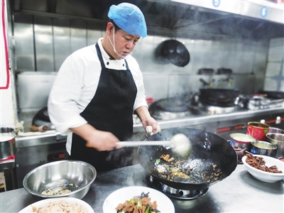 宋亮锋说,店里每道菜都有严格的量化标准,就比如说每道菜每种配料该放多少,都有严格的要求,所以口感上也很稳定。在菜品种类上,三晋饭庄也在不断创新,既能做传统经典菜,也能做符合潮流的创新菜,在口味和花样上让客人有更多的选择。今年店里准备了5款年夜饭套餐,价格从998元至1698元不等,有鲜嫩多汁的金牌吊烧鸡,鲜香四溢的乔府酱肉,象征团圆的吉祥如意开屏斑等,力争每一道创新菜品都能激活顾客的食欲。