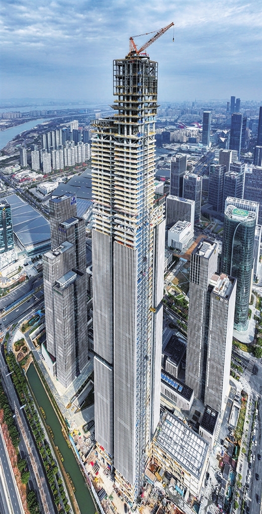 当日,由中建四局承建的南京金融城二期(东区)项目主体结构全面封顶。据介绍,该项目位于南京市建邺区,由南京紫金投资集团建设运营,总建筑面积约42.9万平方米,包含2栋超高层及4栋配套裙楼,其中主塔楼总高度为416.6米,是集办公、酒店、公寓、商业于一体的超大型综合性建筑群。