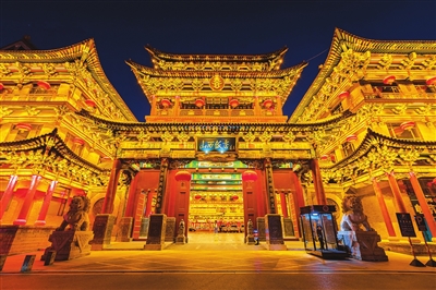在喧嚣热闹的五一广场西北侧,矗立着一座巍峨壮观的古风建筑,朱墙翠瓦、晋韵悠扬。