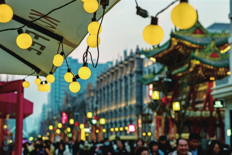 1月20日,随着夜幕降临,悬挂的彩灯和景观灯扮“靓”钟楼街,营造热烈、喜庆、祥和的节日氛围,提前让年味浓起来。