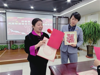 临近春节,窗花是很多家庭必不可少的装饰品,购买的当然比不上自己亲自剪出来的。为满足大家的学习意愿,营造欢乐和谐氛围,半坡西街召集居民和驻地单位代表,在新时代文明实践站听剪纸非遗传承人辛爱英讲解剪纸艺术。讲解之后是制作环节,人们在辛老师的指导下,一边折一边剪,现场气氛热烈。