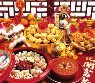 新春美食尝不停,来年全家行大运。每逢农历新年,香港本地人在过年时会享用盆菜,其制作方法很有讲究,且食材丰富,包括猪肉、枝竹、萝卜等,亦会加入蚝鼓和鲍鱼等名贵材料,寓意丰衣足食。新年期间,香港本地人家里都会准备糖果盒,招待亲朋好友。他们称糖果盒为“全盒”,寓意十全十美,传统上格数则多为单数。全盒放“八甜”和油器(油炸食品),八款甜食如糖莲子,象征好意头的糖冬瓜,而许多人也会放入瓜子和开口枣、油角等炸物,寓意家肥屋润。谈到最受欢迎的应节食品,贺年糕点必定为不二之选。咸甜俱备的年糕寓意新一年步步高升,财源广进。各家各户通常会于新年前制作好年糕,在拜年时用来招呼亲友。