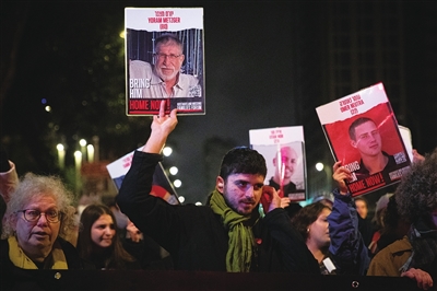 1月24日,人们在耶路撒冷街头参加游行,呼吁以色列政府在加沙停火止战,并尽快采取措施让被扣押在加沙地带人员获得释放。 新华社 发