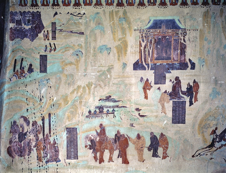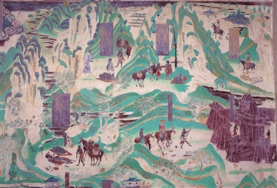 今天,两晋南北朝至隋唐的画作绝大多数已经失传。这种色彩明快的唐代青绿山水画,是莫高窟为后世留存的一段珍贵文化记忆。