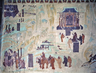 走进莫高窟第323窟,习近平总书记望向北壁上的一幅壁画。