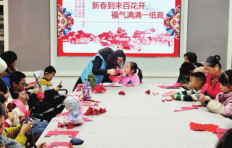 新春佳节将至,为进一步弘扬中华优秀传统文化,提高辖区未成年人的动手和创造能力,新建南路第二社区联合社工站组织辖区未成年人开展新春剪纸活动。老师现场示范剪纸方法,教授剪纸技艺。孩子们听得跃跃欲试,纷纷拿起剪刀,有模有样地将手中红纸剪成一幅幅惟妙惟肖的作品。剪纸活动不仅“年味”浓,“趣味”多,还提升了孩子们的动手能力。