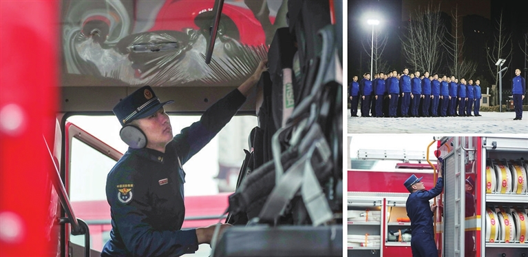 2月1日,太原市消防救援支队特勤大队北营站的队员们加强训练,维护设备,保障市民度过一个平安祥和的春节。 王韵菲 摄