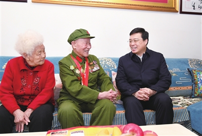 今年91岁的老党员贾振鑫1949年4月参加革命,是第一批入朝的中国人民志愿军战士,曾荣立2次三等功。当天上午,韦韬来到贾振鑫家中,与老人促膝交谈,悉心询问作息起居、健康状况等,端详老人胸前的军功章,翻阅老人的摄影作品,认真聆听他讲述自己的革命、工作经历和离休生活。看到老人在家人和社区的关心照料下精神矍铄、思维敏捷,韦韬高兴地说,老党员是我们党的宝贵财富,为党的事业和国家建设作出了重要贡献,是我们学习的榜样。各级各部门要带着深厚感情,用心做好服务工作,帮助解决实际困难,让他们能够安度晚年、颐养天年。临行前,韦韬向老人送上慰问金,祝他新春快乐、身体健康。
