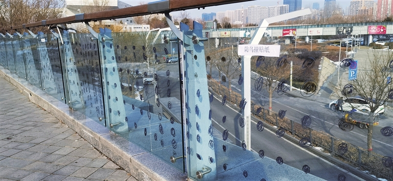 在反映该情况过程中,郭女士了解到:科学的防鸟撞设施是一种“波点”贴膜。她便利用休息时间,在这些玻璃上画满黑色“波点”,并粘贴有防鸟撞说明语,希望能引起鸟儿注意。