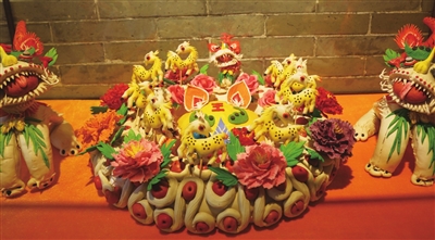山西花馍由传统的面食制作而成,在民间有1000多年历史。2008年,山西花馍被列入国家级非物质文化遗产。龙年将至,含有龙形花馍的年馍礼盒受到大家的追捧。“目前,每天接单礼盒100多套,销售额可达1万余元。由于龙的造型复杂,制作一条盘龙花馍要耗时3个小时。自进入腊月以来,工作人员每天要工作16小时左右。”续爱花说。