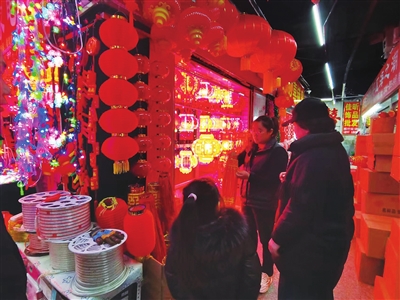 阳光下,对联摊如花团锦簇的片片红梅海,灯笼摊若缤纷绚丽的串串七彩果,加之偶有热气蒸腾而上,浓郁的人间“烟火气”在小商品批发市场弥漫。