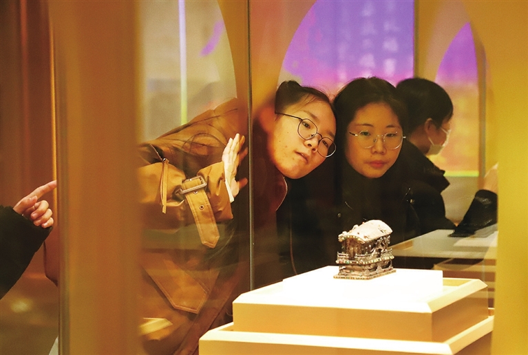 六边形的地宫打开后,一件石函赫然出现,石函、木椁、铜椁、银椁、金棺,沉寂千年的盛唐五重宝函重见天日。石函函盖外表刻满文字,根据铭文确认舍利宝函为武周至唐睿宗时期的遗物。鎏金铜饰木椁,出土时已残损,木胎鎏金铜椁由椁盖、椁身和椁座三部分组成,饰有青龙、白虎、朱雀、玄武及供养人、佛足等饰件。宝装木胎银椁结构及装饰构件,与铜椁相近,尺寸略小,周身镶嵌珍珠、绿松石、红玛瑙等珠宝百余颗。金棺用丝带捆扎,上系蝴蝶结。
