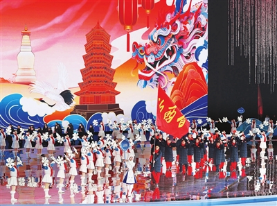 当晚,第十四届全国冬季运动会开幕式在内蒙古呼伦贝尔市海拉尔区内蒙古冰上运动训练中心举行。 新华社 发