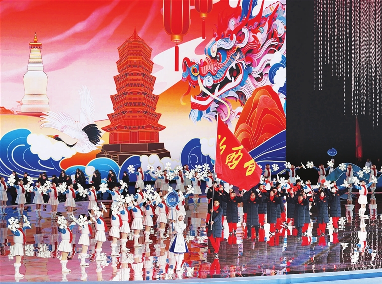 2月17日,山西省体育代表团在开幕式上入场。