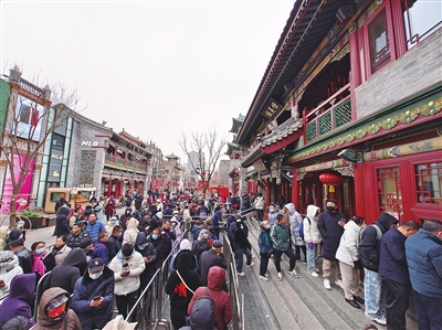 2月19日,在钟楼街恒义诚老鼠窟元宵店前,顾客排起了长队。