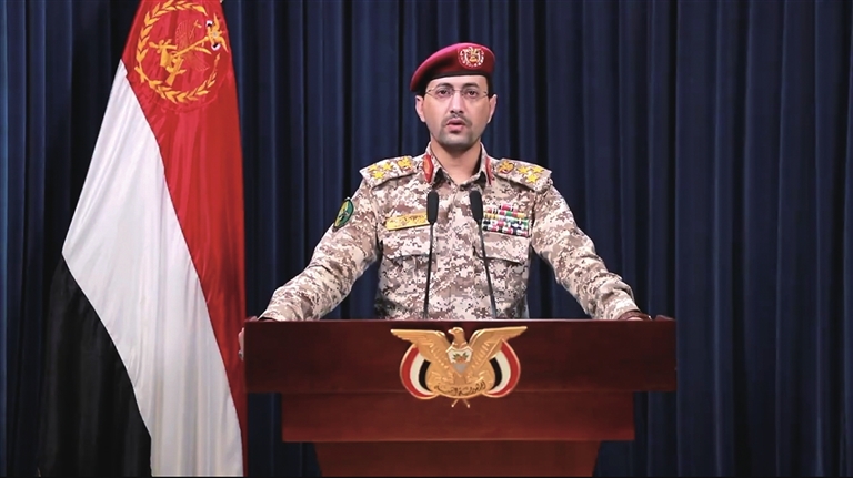 这张2月19日的视频截图显示,也门胡塞武装发言人叶海亚·萨雷亚在萨那发表声明。