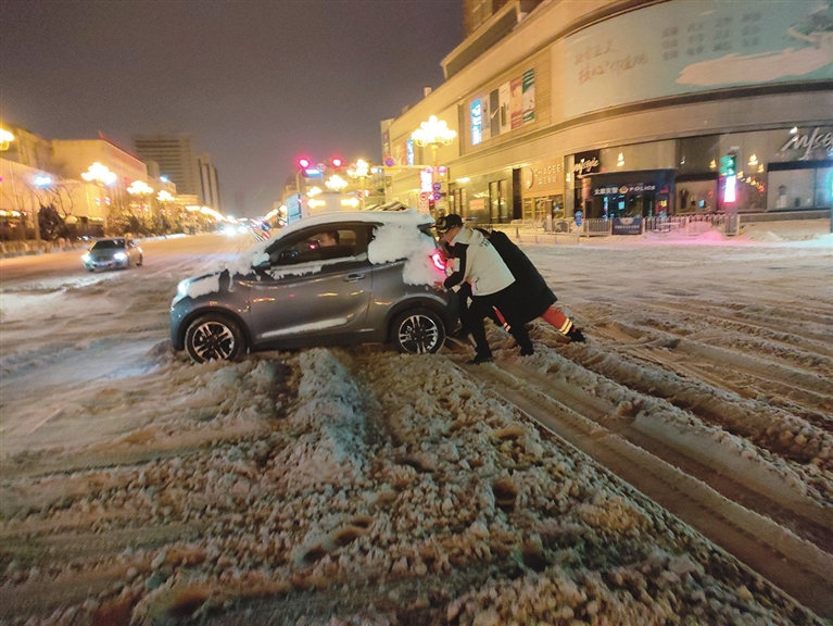 深夜接到指令后,杨勇等队员在史俊杰队长的带领下,在迎泽区的并州路、解放路、南内环街等地展开巡逻式救助。尽管是凌晨时分,街头依然有遇困车辆。史俊杰介绍,一些受困车辆前的积雪较厚,且有冰冻情况,牵引杆难以安装到位。更多时,他们采取人推车的笨办法,将受困车推出一段距离,再尝试着行驶,不行再推,再尝试,直到完全脱困。截至凌晨4时许,他们共帮助10辆车脱困。
