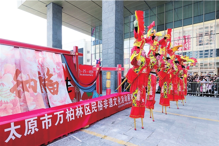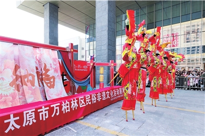 2月24日,由万柏林区委宣传部主办的万柏林区民俗非遗文化活动展演在公园时代城广场举行。 张昊宇 张岱俊 摄