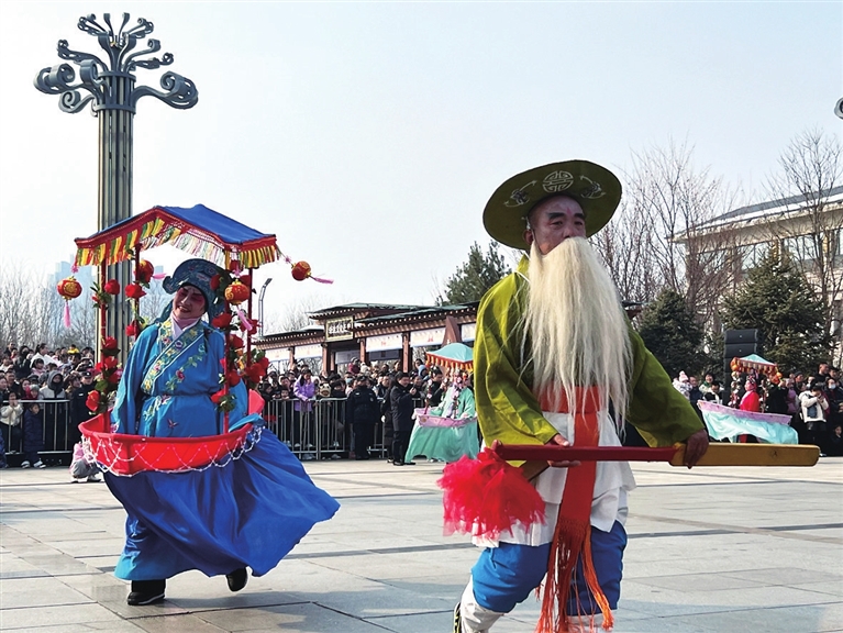 2月24日下午,100多名表演者身着喜庆服装,在小店区新时代文明实践中心广场神采奕奕地备演。现场,锣鼓、旱船、舞龙、抬花轿等多个传统民俗节目相继展演,表演者们踩着锣鼓点,舞步轻盈、动作舒缓、交叉舞跑,把一个个传统经典故事演绎得淋漓尽致,表演喜庆又接地气。