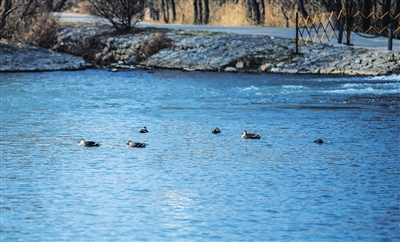 2月28日,汾河湿地公园,水禽嬉戏于碧水间,春意荡漾。王韵菲 摄