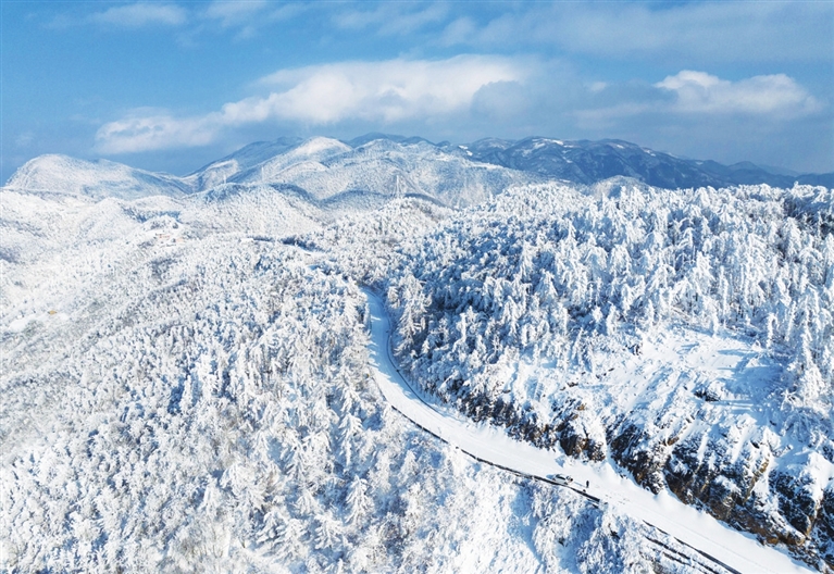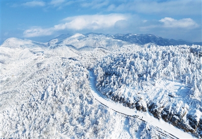 2月24日,游客在湖北省襄阳市保康县后坪镇拍摄雪景。