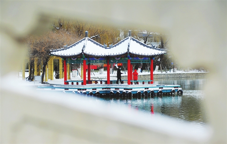 2月22日,游客在山东枣庄滕州市荆河公园景区游玩。