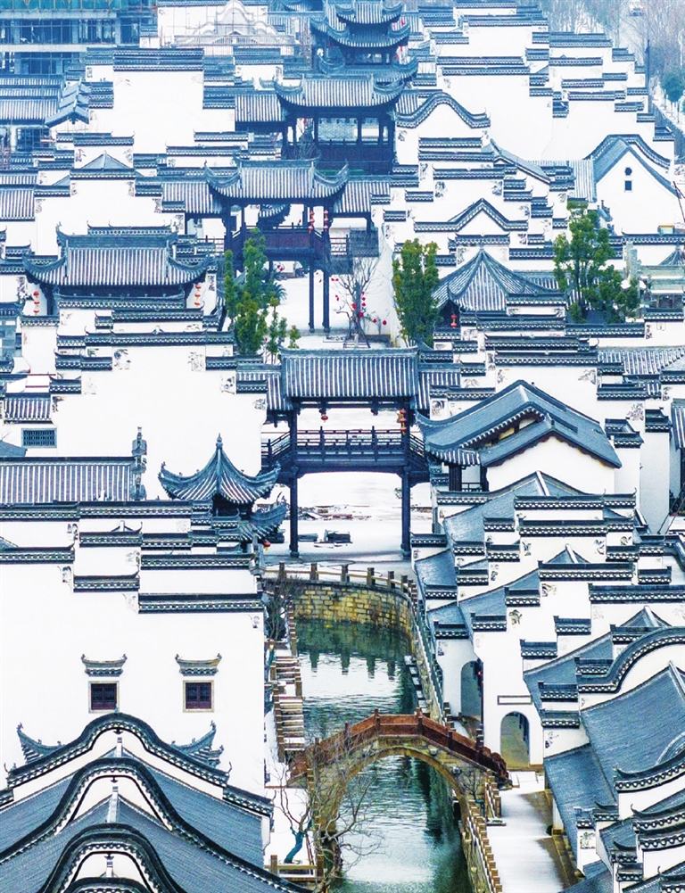 2月21日拍摄的湖北省孝感市云梦县祥云湾古建筑群雪后景色。