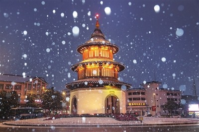 2月22日拍摄的江苏省扬州市文昌阁雪景。