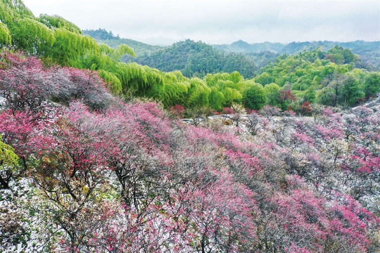 2月22日,在浙江省湖州市安吉县杭垓镇,梅园的8000余亩梅花傲雪开放。