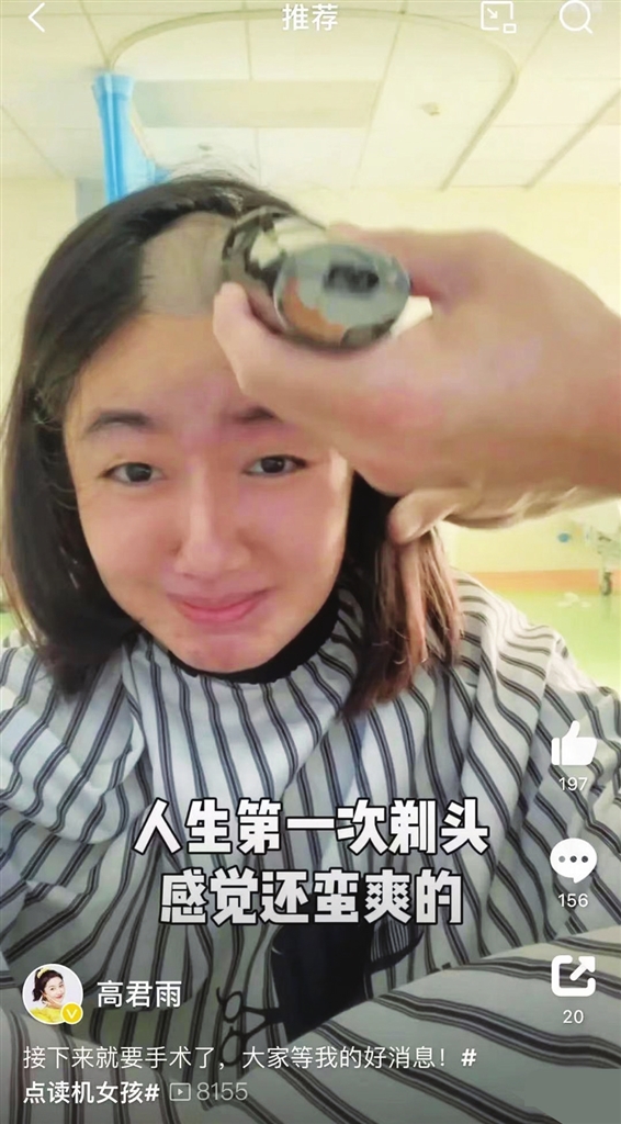在2024年2月29日的视频中,高君雨提到自己最终被诊断患有一种罕见脑瘤。视频中她疑似在医院病房,在微笑中剃掉头发,并提到自己接下来将要做手术。