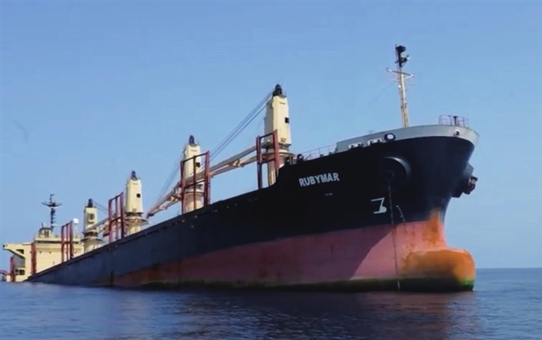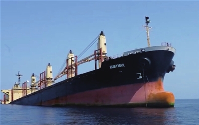 胡塞武装2月18日用导弹袭击了“鲁比马尔”号,货船受损,船员被迫转移至吉布提。美国中央司令部当月24日说,“鲁比马尔”号载有大量化肥,遇袭后船体缓慢进水。
