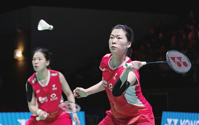 3月3日,李怡婧/罗徐敏(右)在比赛中。当日,在2024世界羽联巡回赛德国公开赛女子双打决赛中,中国组合李怡婧/罗徐敏2比1击败保加利亚组合加布丽埃拉·斯托耶娃/斯特凡尼·斯托耶娃,获得冠军。 新华社 发
